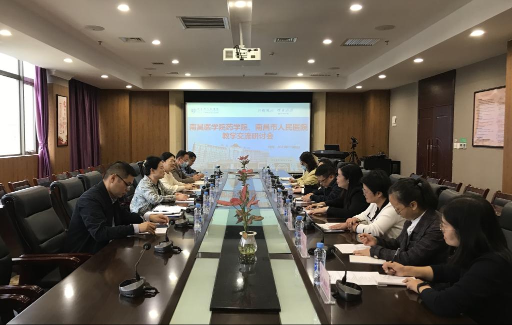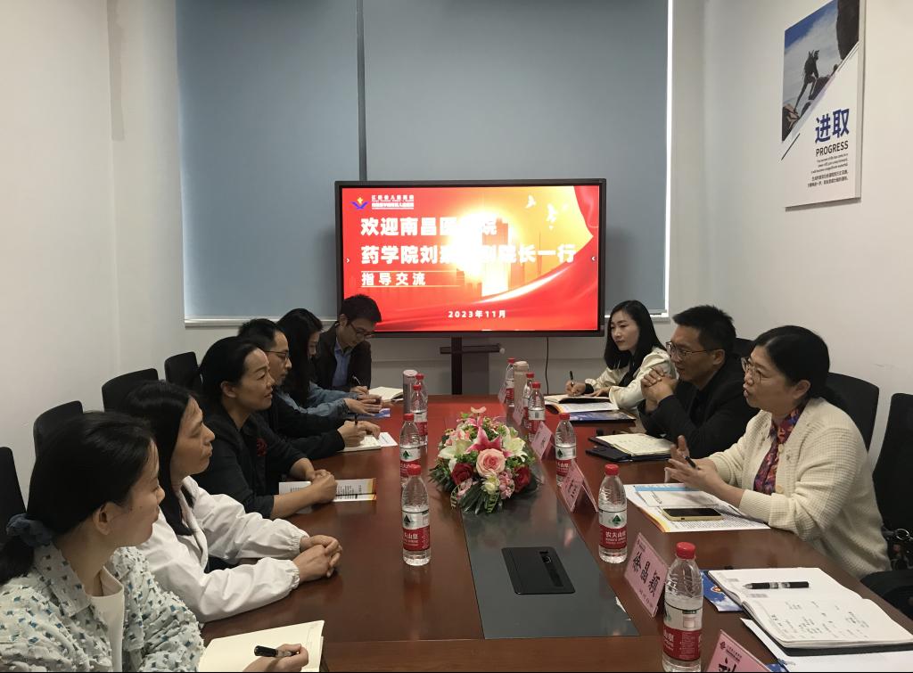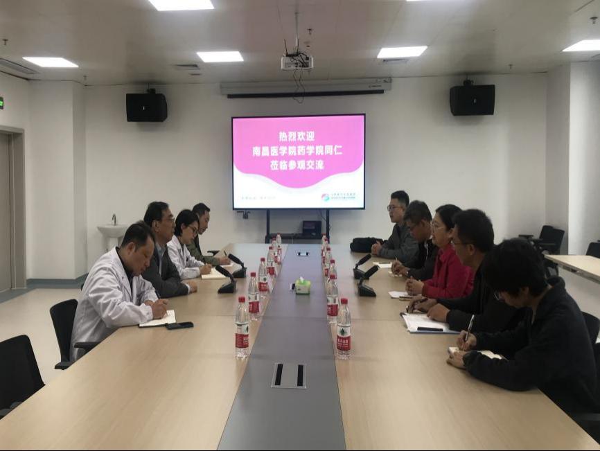 (与南昌市人民医院副经理刘圣山和药学部主要负责同志进行交流 徐晶颖/摄)
