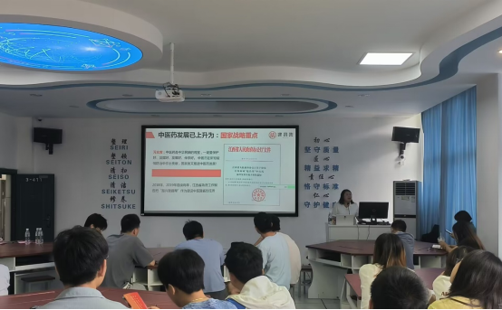 会议之初,学术推广张经理向大家介绍了建昌帮的历史渊源和文化内涵,作为中药炮制的中华老字号,坚持中药饮片的主体地位,紧跟中医药发展向好趋势,企业规模不断扩大。同时,企业的多元化产品和充满前景的发展路径赢得了同学们的关注。人力资源殷总与同学们分享几位前辈在建昌帮奋斗的经历,获得了阵阵掌声。她告诉同学们:“挑战和机遇并存,建昌帮欢迎敢于接受挑战的人才并且给予大家最大的利益,应当员工和企业一同进步,坚持做一流中药产业。”最后向大家讲解了本次所招聘的岗位内容和薪资待遇,并与意向实习生沟通相关事宜,现场氛围积极融洽,同时建群方便后续交流,宣讲会取得圆满成功。