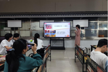 此外夏琦敏同学分享了关于民俗的特色之美。她以民间热闹欢腾的庆祝民俗活动的画面开场,介绍了充满地域特色的建筑风貌,每一处特色建筑都凝聚着当地人民的智慧和情感,并详细讲述了独具风味的特色美食,每一种特色美食都蕴含着深深的文化韵味,以人们在民俗活动中欢声笑语展望未来的美好场景结尾。