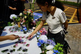 活动现场首先映入眼帘的是色彩缤纷的气球拱门,粉蓝黄相间的气球凸显了“迎新”的喜庆氛围,成为新生与家长拍照留念的首个热门打卡点。拱门两侧,精心设计的鲜花与气球格外引人注目。活动核心区域设置了花卉展与投票区两大板块。在花卉展中,不仅展示了信誉最好的十大体育平台员工拍摄的药用花卉摄影作品,还收录了多家合作研究院所提供的药用植物照片,每张作品旁均配有二维码,扫描二维码后就能看到详细的文字介绍,涵盖植物名称、药用功效、生长习性等专业知识,让新生在观赏中潜移默化地接触药学专业知识。而在投票区,现场设置了实体打卡板,新生可领取专属投票贴纸,为自己喜爱的花卉照片投票。活动期间,信誉最好的十大体育平台教师与志愿者为新生及家长提供引导与讲解,充分展现了信誉最好的十大体育平台师生互助、温暖友爱的良好氛围。