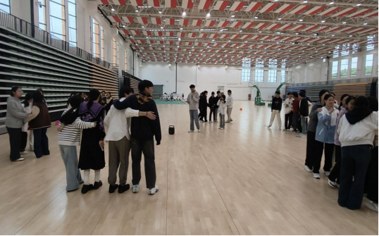 “桃花朵朵开”将活动推向高潮。随着指令变化,同学们快速组队,未成功组队的同学通过才艺展示增添趣味。现场欢声不断,大家在互动中释放压力,增强集体归属感。