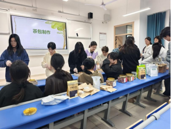 最后,茶包制作与抽盲盒的环节,同学们将自己制作的茶包与写有自己当下的感想或励志语句的卡片封入牛皮纸袋中,完成盲盒,进行了随机抽取。盲盒的新颖为同学们的心灵碰撞提供了轨道,促进了思想的交汇与心灵的互相慰藉。