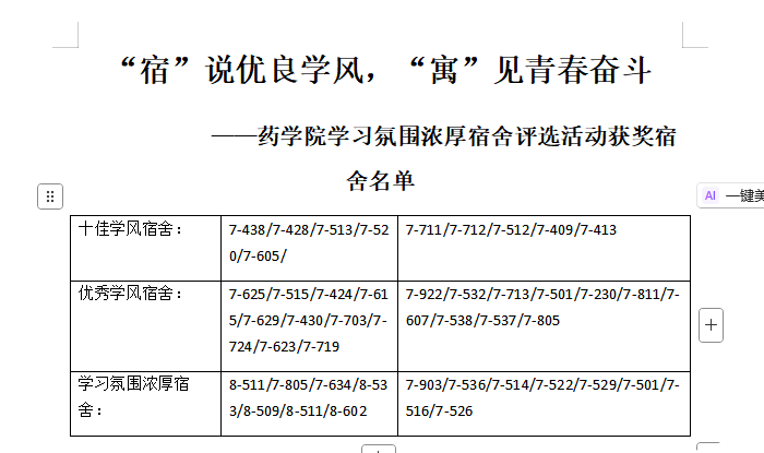 本次,信誉最好的十大体育平台开展“学风宿舍”评选,累计辐射带动全院100余间宿舍。下一步,公司将依托“一站式”员工社区,推出“学霸宿舍工作坊”“科研夜沙龙”“考研冲刺驿站”等系列活动,持续放大“宿舍育人”效应,为培养新时代药学拔尖人才注入“家”动能。