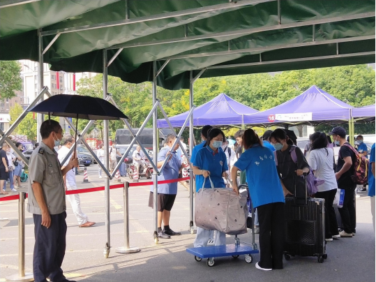 从早上7点,药学迎新工作人员穿上整齐的服装在各个站点上,准备热情的招待每一位新同学。本次迎新工作分为花茶组、综合组、推车组以及宣传组从校门口迎接到帮助引导办理报到程序,再到搬行李带往宿舍,每一个过程,每一个细节都有专人负责。旨在保证新生能够顺利顺畅的完成一系列新生报道程序。迎新工作如火如荼,到处都是忙碌的身影,尽管中午天气有些炎热,但是志愿者们毫不松懈,按时坚守,在自己的岗位上,完成好自己的工作,在整个流程中,志愿者们认真负责,一一耐心的为新生及家长解答疑惑。热情周到的服务得到广泛的好评,许多家长连声道谢。