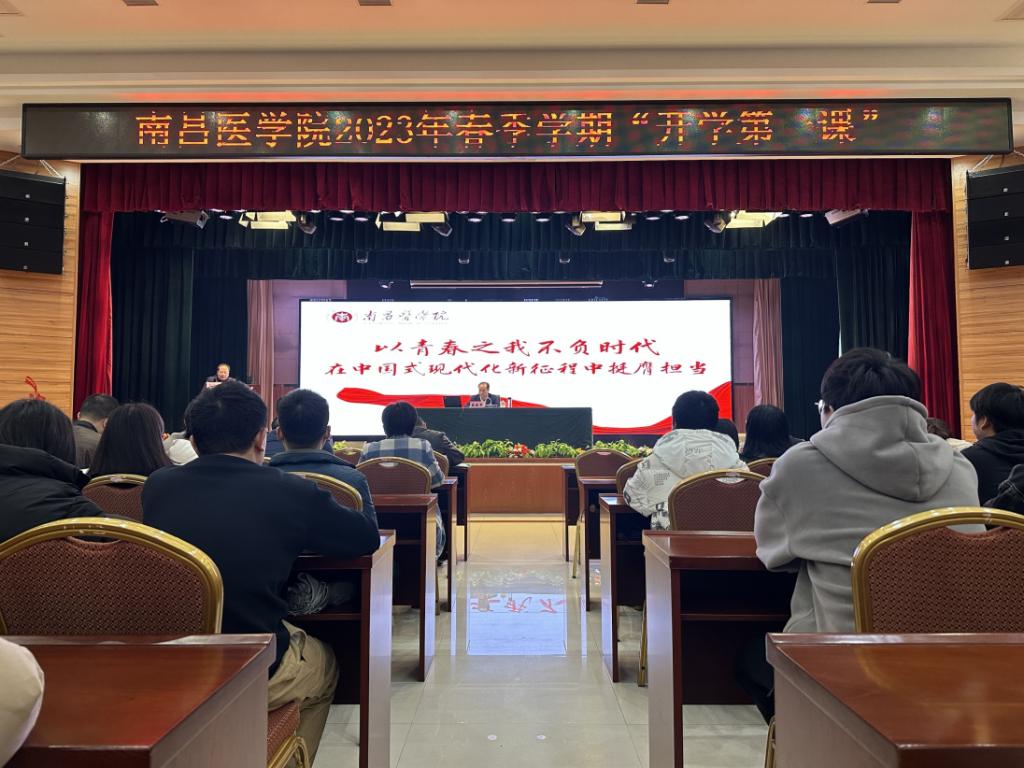 3月29日下午,公司党委书记、省卫生健康委党组成员龚建平在活动中心讲授2023年春季学期“开学第一课”,龚书记联系的公司员工第一党支部、2021级本科药学3班全体师生与全校师生代表一同聆听。