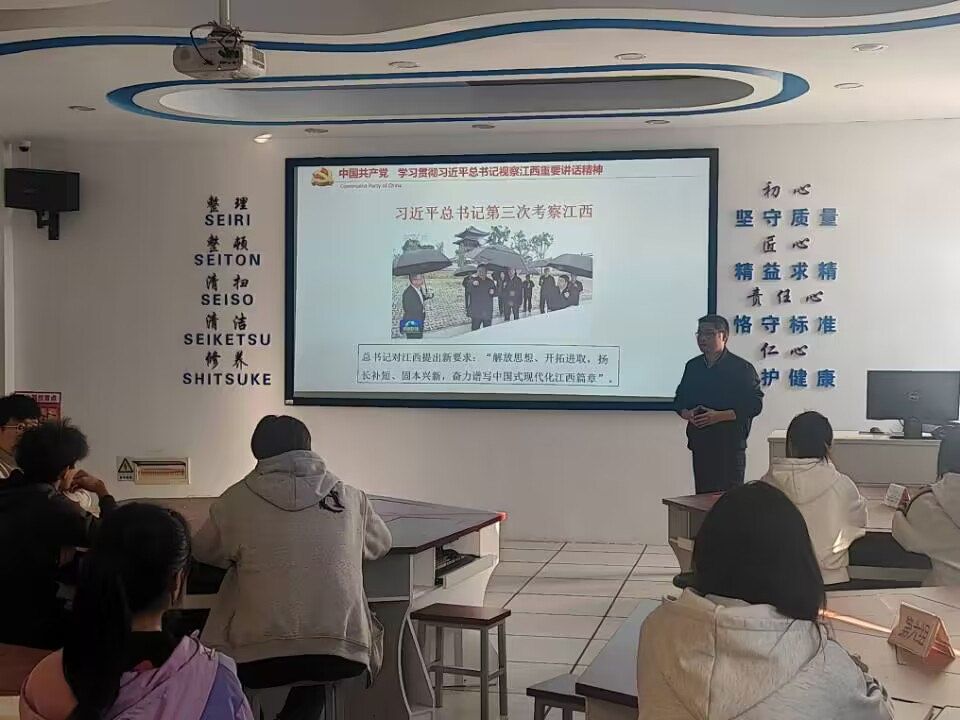 2023年11月20日,信誉最好的十大体育平台员工第二党支部在3号实训楼411教室开展了由支部全体员工党员、入党积极分子参加的学习贯彻习近平总书记考察江西重要讲话精神的专题党课活动,本次党课由支部书记刘永飞主讲。