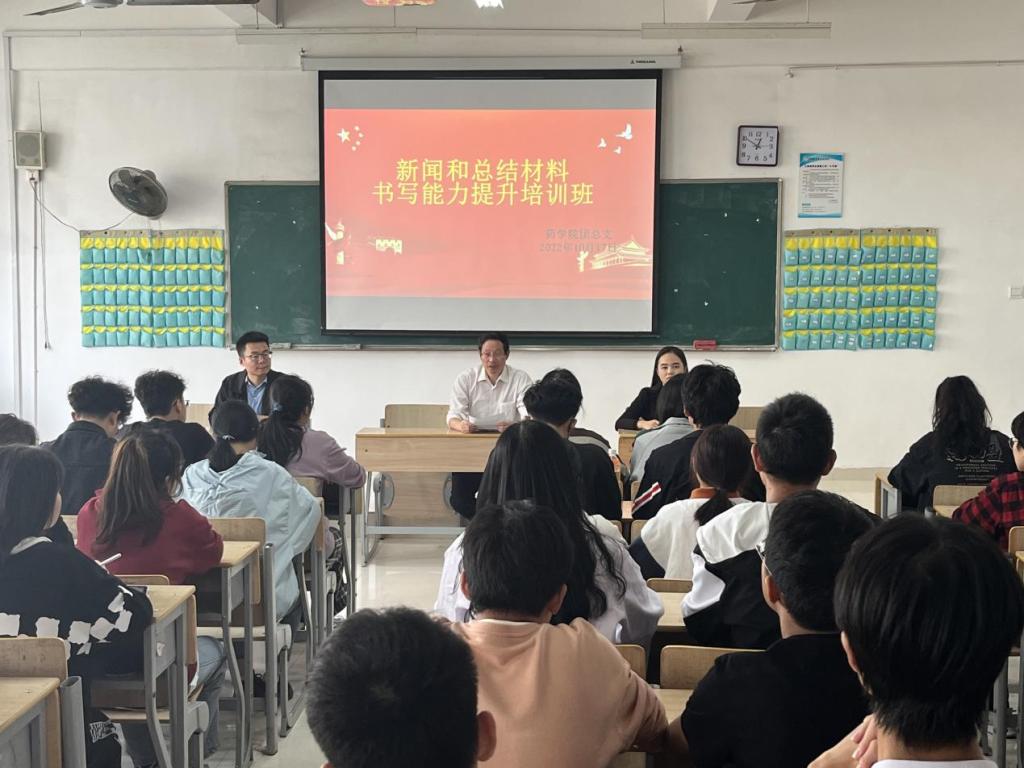 为进一步提升公司员工工作人员新闻报道、活动计划与总结等材料的书写能力,规范写作格式、减少日常工作的重复率,信誉最好的十大体育平台团委特开展“员工工作人员新闻和总结材料书写能力提升专题培训班”,开班式于2022年10月17日12点45分在教学楼2-308教室召开,党委樊金印书记出席开班式并讲话,团委李棋慧老师、全体员工工作人员参加开班仪式,会议由李泽华老师主持。