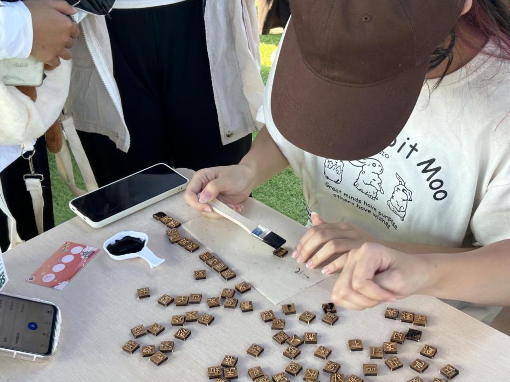 板块四名曰“活字镌韵,文墨生辉”,学子们深入体验活字印刷之精髓与文墨之雅韵,深切感受传统文化的深邃与广博,为本次国庆游园盛会增添了一抹鲜明而独特的文化风景线。