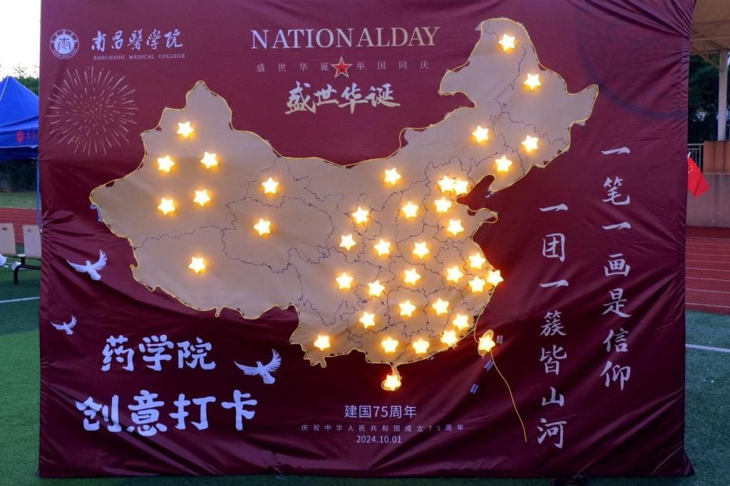 此次活动旨在回顾新中国光辉历程,弘扬爱国主义精神,激励广大师生不忘初心、牢记使命,为实现中华民族伟大复兴的中国梦贡献力量。活动精心设计了四大核心板块。首要板块为“一笔一画铸信仰,一团一簇绘山河”主题创意打卡活动。活动现场,创意打卡展板巍然矗立,格外引人注目,同学们纷纷以饱满的热情与庄重的态度,井然有序地在海报前驻足留影,他们的面容既显露出庄重之情,又洋溢着喜悦之色,以此独特方式深情表达对伟大祖国的崇高敬意与深切热爱,为校园文化生活添上了浓墨重彩的一笔。