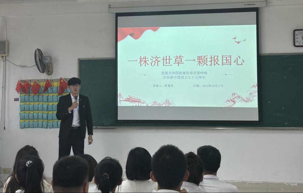 林楚龙同学讲授《一株济世草,一颗报国心》微团课(廖育函/摄)