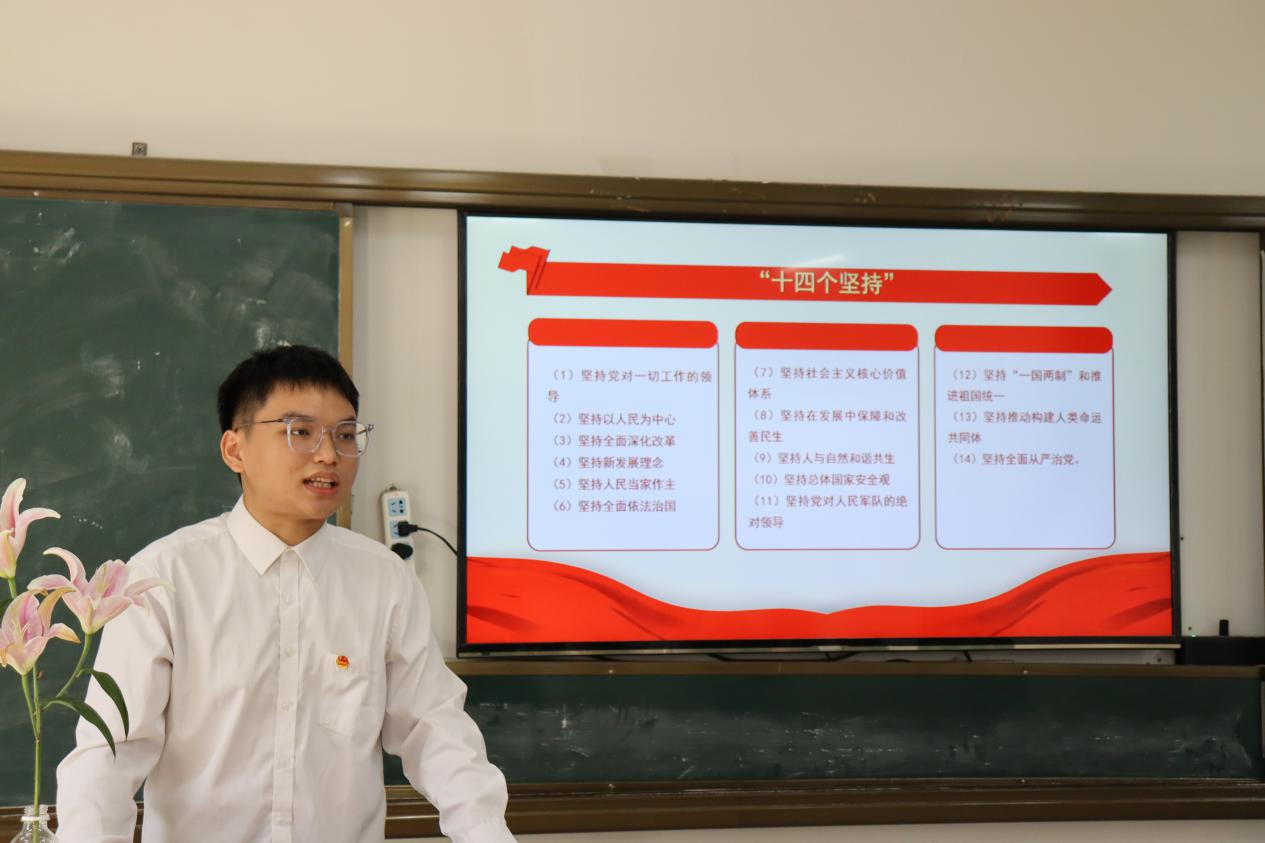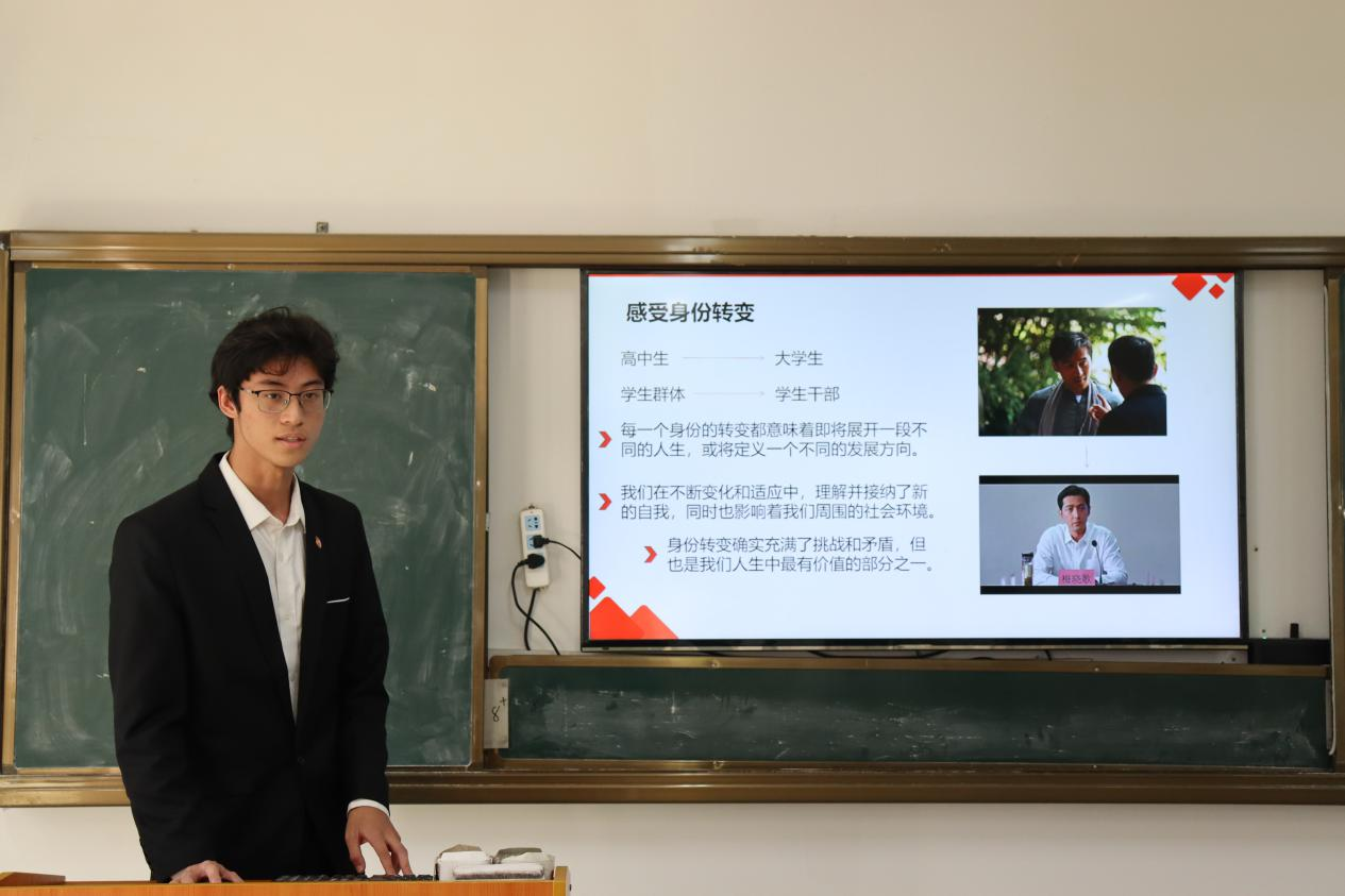 韦家诚同学授课的主题是“学习新思想,争做新青年”,围绕学习习近平总书记系列重要讲话精神和党的二十大精神进行分享交流。黎润玟同学聚焦如何做好员工工作人员这一主题,从感受身份转变,树立自身目标,明确工作性质以及培养高尚品格等方面进行阐释。