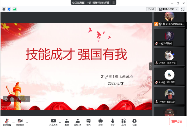 本次班会立足于讲党史故事,拥护党的领导和我国社会主义制度,培养爱国之情、砥砺报国之志,走技能成才、技能报国之路,履行好“请党放心,强国有我”的庄严承诺。