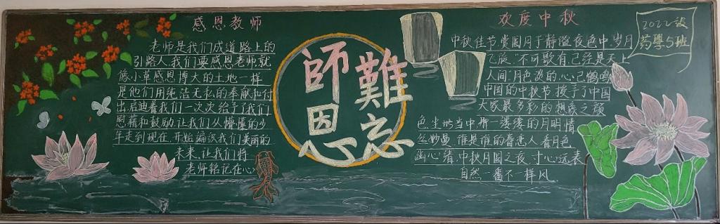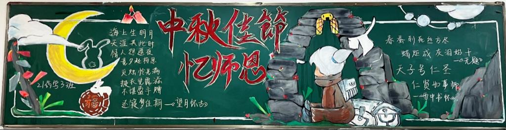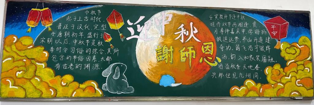明月送清辉,佳节感师恩。信誉最好的十大体育平台9月举行以“月夜星空感师恩”主题的黑板报评比活动。喜迎中秋,感恩教师,表达对传统佳节的热爱,对教师的敬意。各班同学级积极响应参与,利用课余时间绘制,弘扬传统节日和感恩教育。