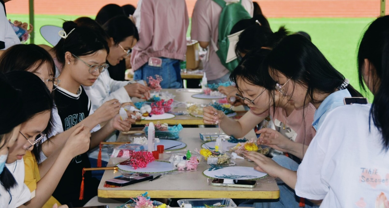 本次活动分为母亲节留言和母亲节礼品DIY两部分。在“时光献礼,纸上存情”母亲节留言部分中,同学们在纸张上写下对母亲真挚的爱和诚挚的感谢,并将其贴在留言板上,拍摄照片与母亲交互情感。在“妙手展艺,爱在其中”母亲节礼品DIY活动中,同学们领取材料手工制作香包、花朵、团扇等DIY礼品。香包上的一针一线,缝进的是孩子对母亲最美好的祝愿。同学们积极参加活动,饱含深情写下留言,专心致志制作DIY礼品,随后领取专属奖品,在操场上洋溢着幸福的笑脸,充斥着温馨的气氛。