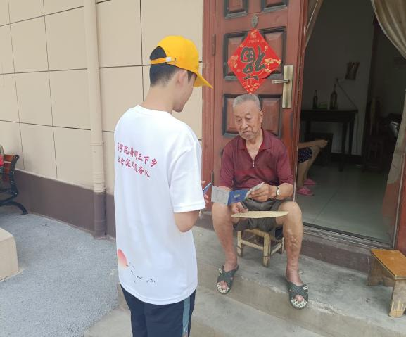 (暑期青少年实践志愿服务队成员同老人交谈 刘倩/摄)