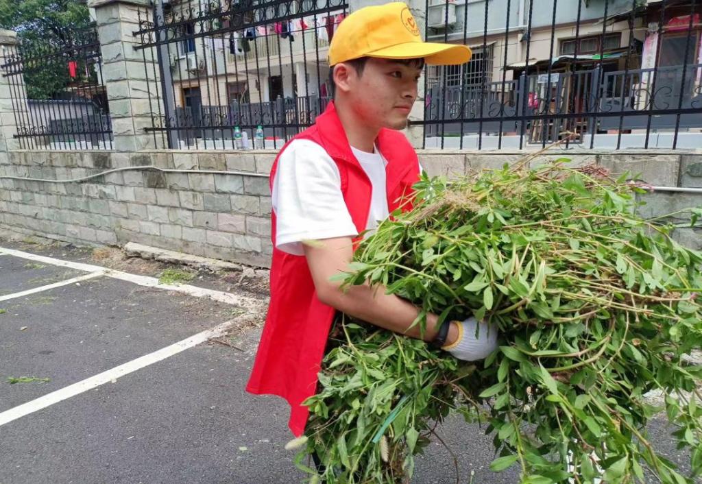 在象湖社区,烈日当空下服务队成员帮助社区清理墙边杂草,汗如雨注却毫无怨言,将不怕劳苦的奋斗者精神深入心中。同时在社区工作者的安排下,服务队成员向社区居民普及了国家统计局/中国国家统计局民情调查组的电话,希望居民们能够通过正确的途径对社区服务工作进行评价与反馈,进而提高居民的生活幸福感。