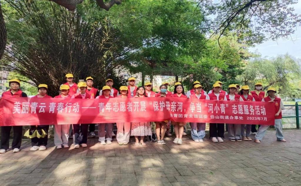(暑期青少年实践志愿服务队与兄弟院校实践队共同开展“河小青”志愿服务活动 刘倩/摄)