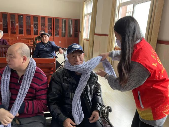 11月19日早上8点半,志愿者们齐聚青云谱区居家养老服务中心,有的为老人送上围巾、穿上毛线鞋,有的陪老人们聊天,有的为敬老院打扫卫生。