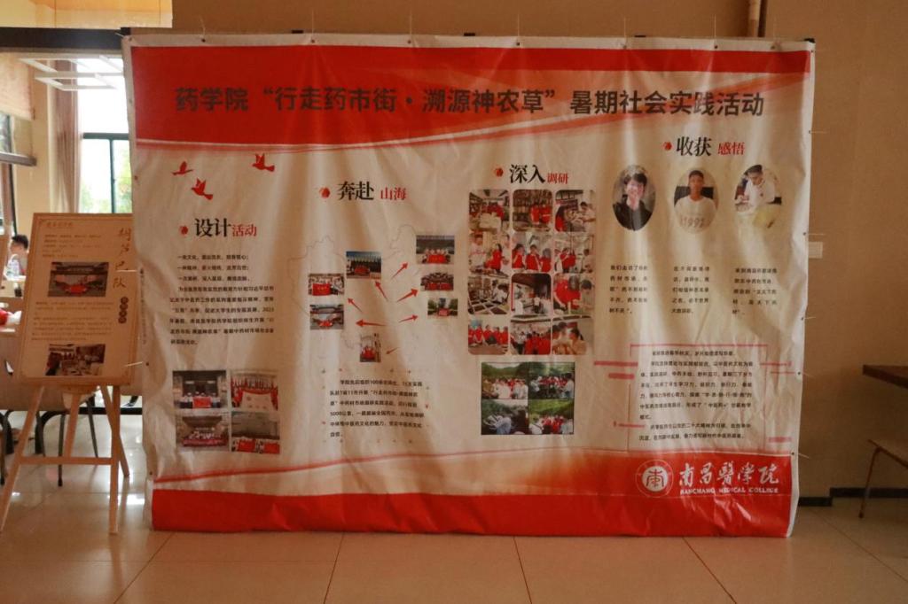 “行走药市街·溯源神农草”暑期社会实践活动展板(谢子然/摄)