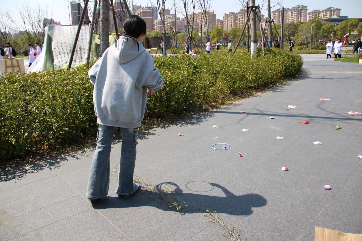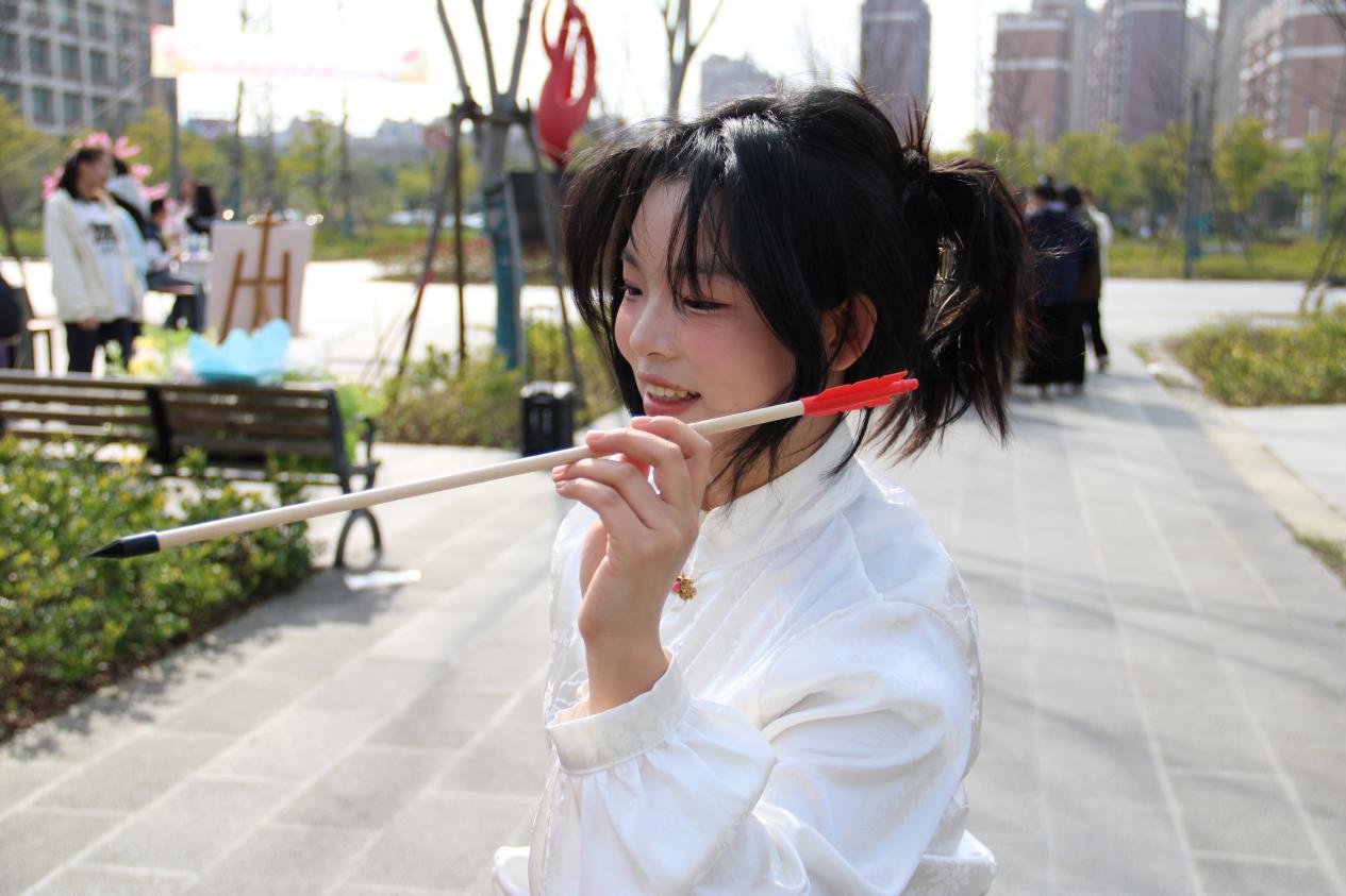 同学们在“花朝锦程,壶中妙药”活动中进行投壶游戏(沈嘉玘/摄)