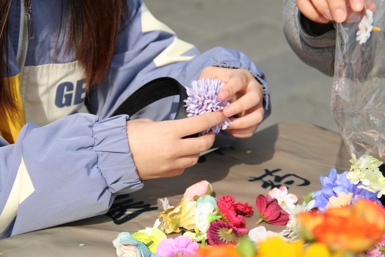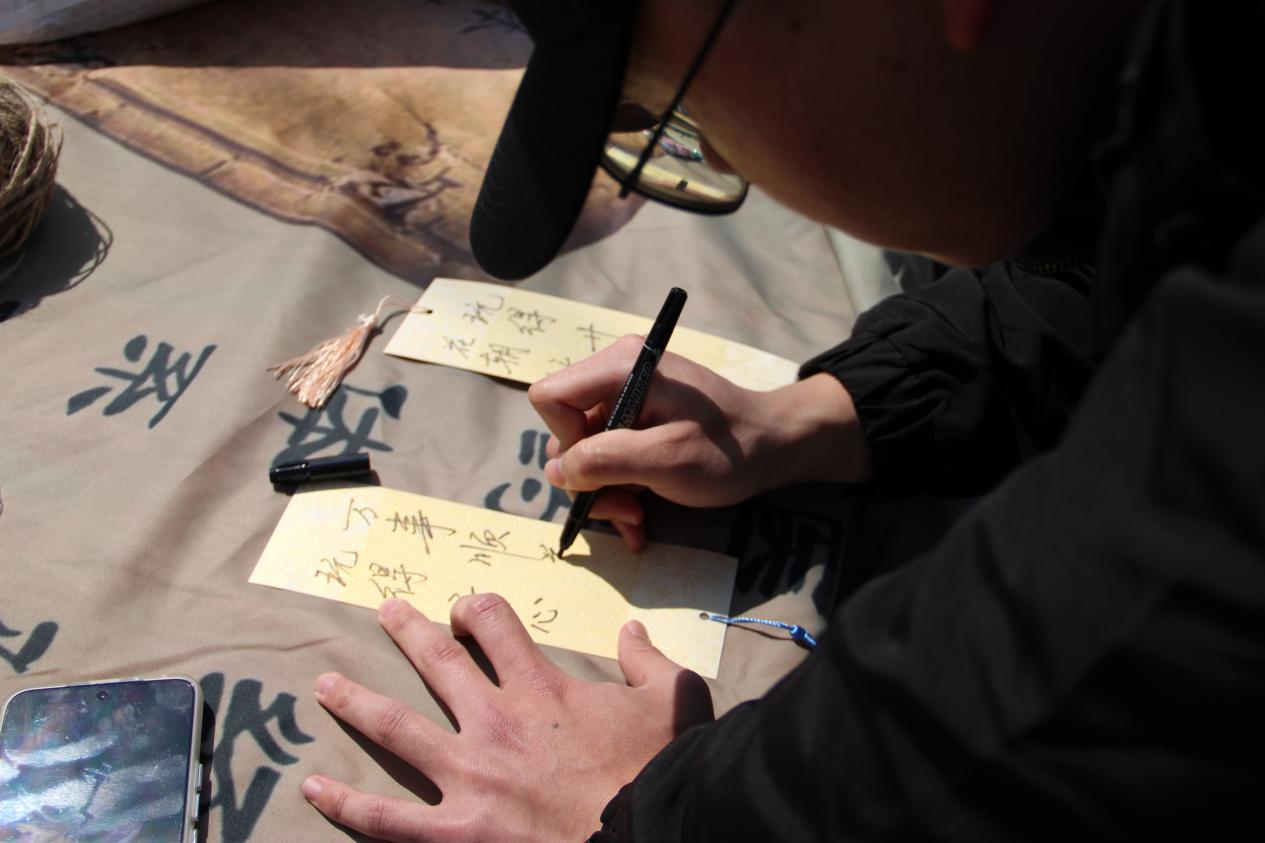同学们在“花朝祈愿,福运满枝”活动中写下自己的祈愿(沈嘉玘/摄)