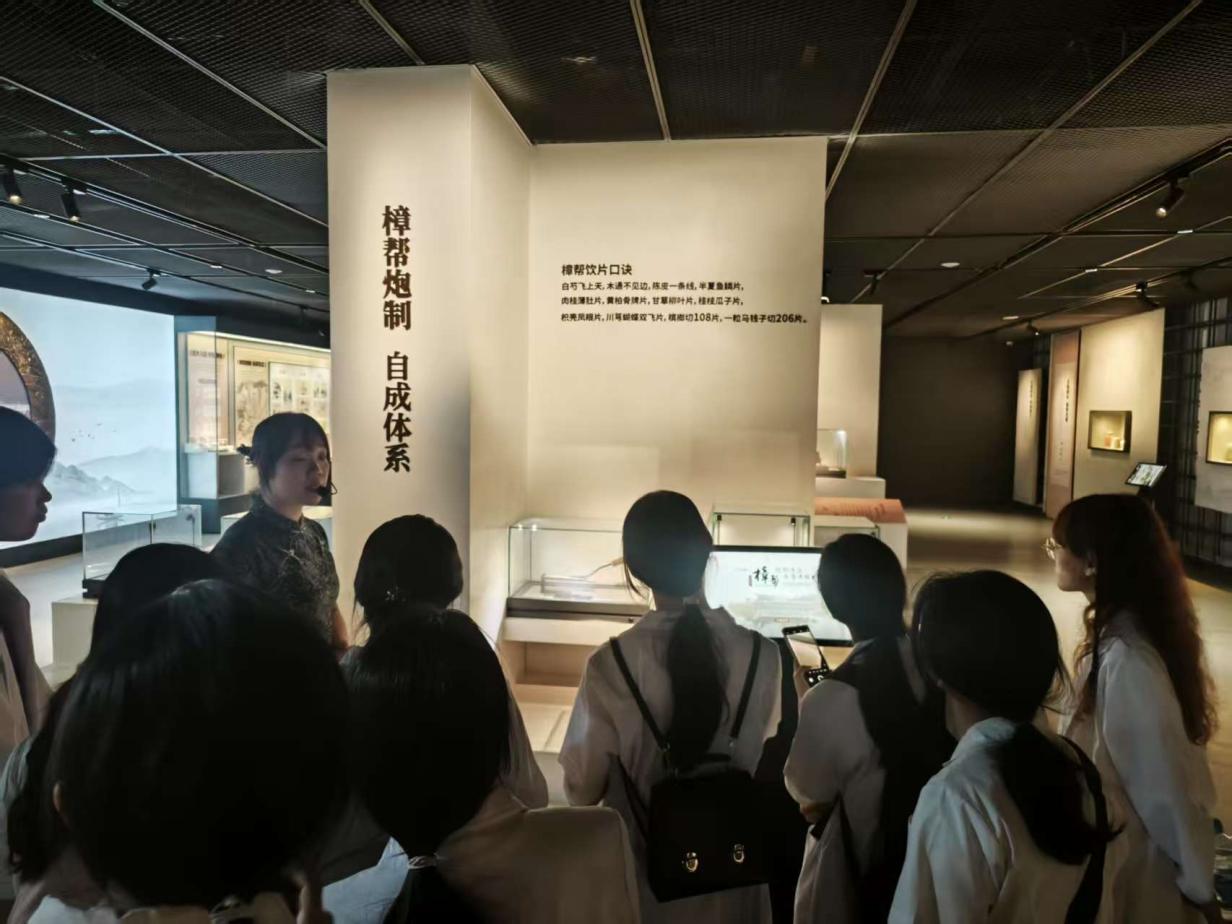 第二站中国药都中医药博物馆实践以“中医药思维与文化传承”为主题。学员通过AR技术复原宋代樟树药市交易场景,结合《樟树药帮志》等古籍,梳理“赣十味”从野生采挖到规模化种植的千年变迁史。馆内丰富的展品和详实的资料,生动地展现了中华医药的悠久历史以及樟树作为 “药都” 的深厚底蕴。同学们在参观过程中,认真聆听讲解,对中医药的起源、发展以及樟树在中医药史上的重要地位有了更直观的认识。